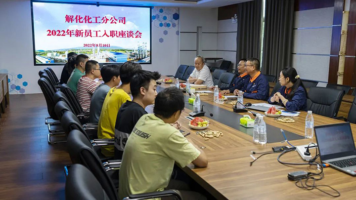 近日,解化化工分公司召开新员工入职座谈会,公司领导班子成员、相关部分领导及10名新员工加入集会。